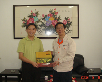 昆明機(jī)床總經(jīng)理張曉毅向陳董事長贈送廠慶紀(jì)念品 |