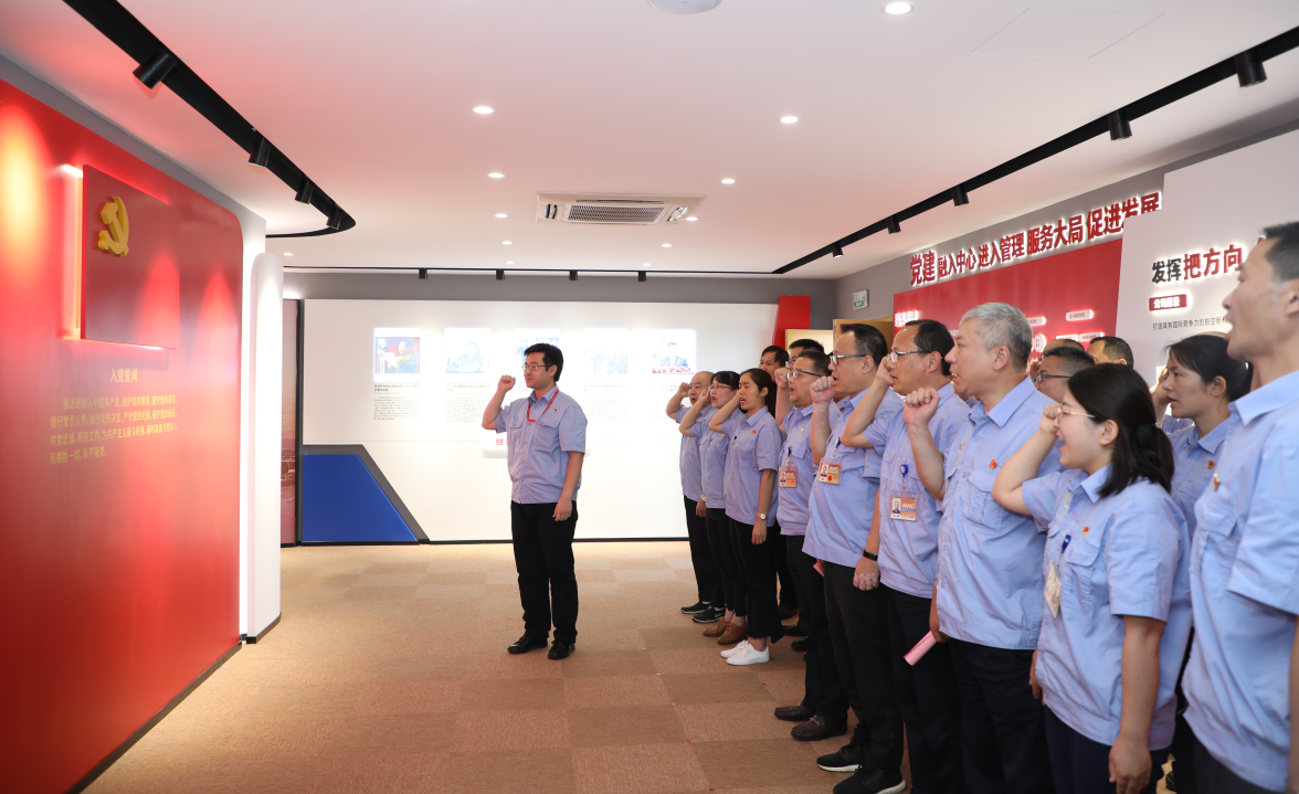 在公司黨委委員、副總經(jīng)理毛繼潤帶領(lǐng)下,參加活動(dòng)的全體黨員面向黨旗,莊嚴(yán)宣誓,重溫入黨誓詞。公司黨委為現(xiàn)場7月入黨的12名同志過政治生日,贈送政治生日賀卡和圖書。公司黨群紀(jì)檢部副部長金周玉帶領(lǐng)參觀活動(dòng)中心。黨員們在廉潔合規(guī)承諾墻上簽名。