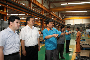 6月11日下午,南通市副市長黃愛軍前來公司視察。在參觀工廠過程中,公司總經(jīng)理凌衛(wèi)國向黃副市長一行匯報了公司產(chǎn)品研發(fā)及經(jīng)營情況。黃副市長還仔細詢問了公司的產(chǎn)品技術含量及當前的行業(yè)形勢。參觀結束時,黃副市長深有感慨地說:“盡管我對機械是個外行,但看了南通科技的現(xiàn)場,我感覺很舒服!”港閘區(qū)委書記沈雷、區(qū)長沈紅星等領導陪同視察 。